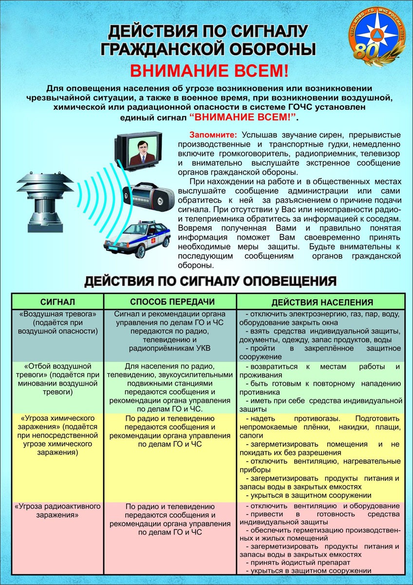 1) Действия по сигналу гражданской обороны